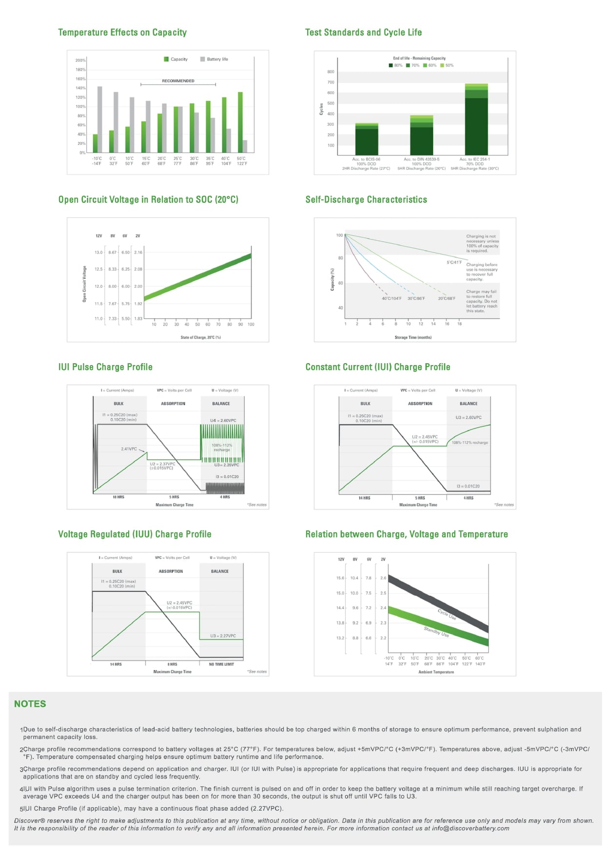 Long lasting life cycles at 3,500+ using full depth of discharge (DOD) and still has power to spare. It can hold a charge for up to 2 years.